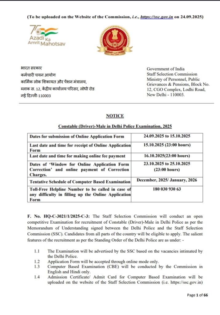 First and foremost, it is crucial that all candidates understand where they can find the official updates. All official updates regarding Delhi Police Driver Recruitment 2025 will be posted through the Staff Selection Commission (SSC) website.